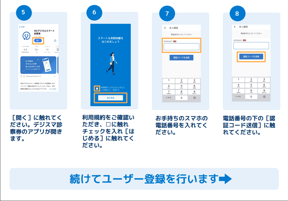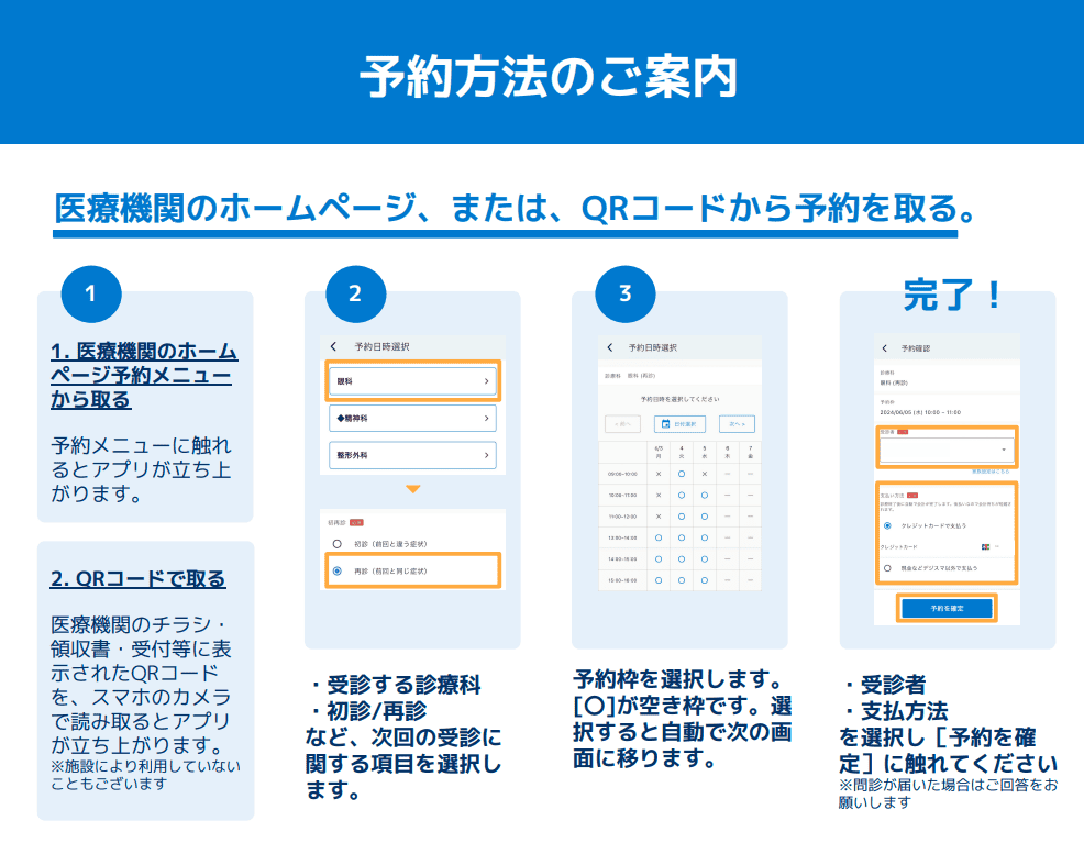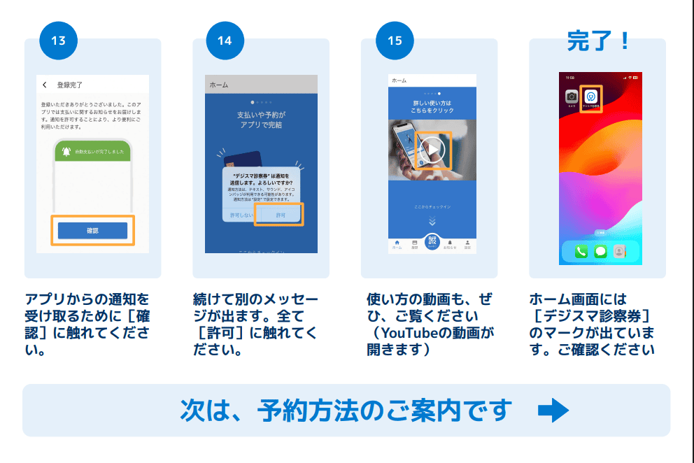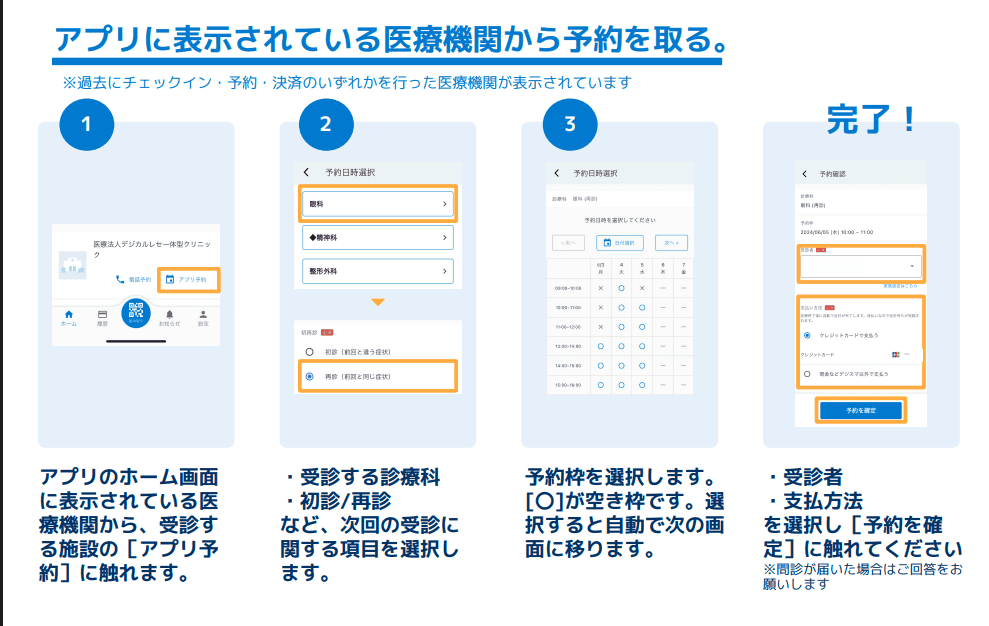 📱 デジスマ診療は予約や問診票の記載、診療終了後の会計などをすべてアプリ内で行えます。