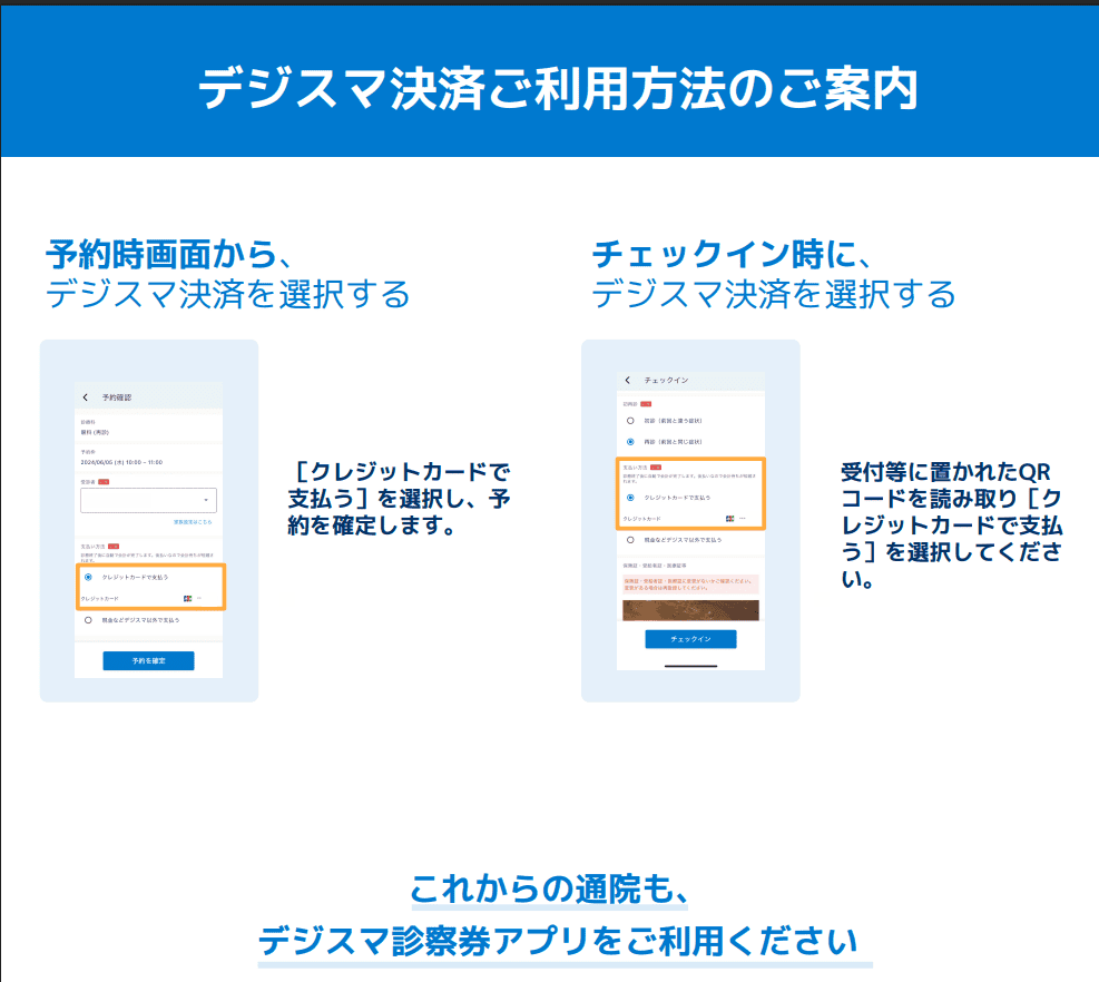 💳 クレジットカードを登録しデジスマ決済をすることで、診察終了後の会計待ちをせずに帰宅できます。
