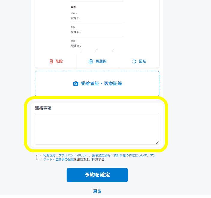 📒予約確定前に表示される自由記載の「連絡事項」欄をご活用ください。